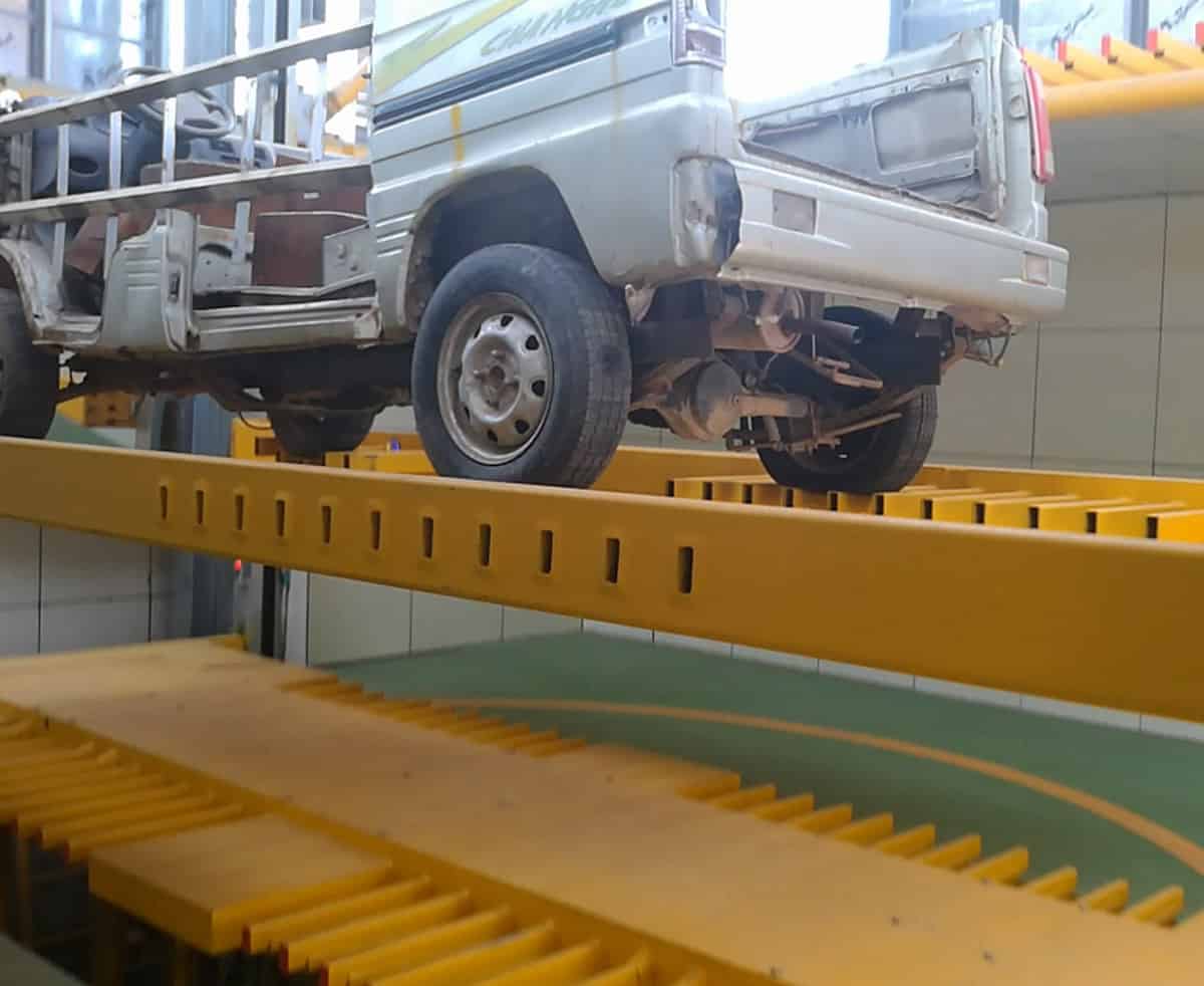 停车楼垂直升降机械车库采用与电梯类似的原理与结构,司机只需要将车停到出入口,汽车升降机将自动把车辆提升并搬运到更近的空车位,完成整个停车过程。是一种空间利用率非常高的设备。常规为55平方米左右的土地容纳50个车位,高度为45米,更大优点是占地面积小,非常适合狭小地区停车使用,其可作为独立建筑,又可嵌入到原有建筑中,与主体建